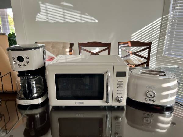 Lightly used Haden coffeemaker, toaster and microwave. Color is Putty. Everything works fine. Moving and getting rid of stuff. $100 for the set.