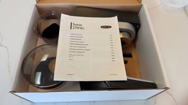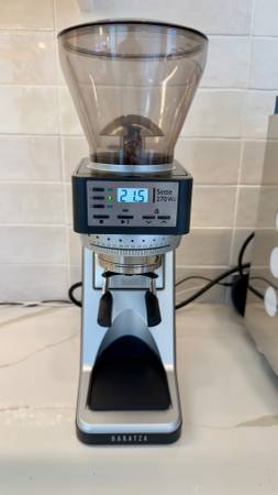 The Baratza Sette 270WI is a high-quality conical burr espresso coffee grinder designed for coffee enthusiasts who appreciate freshly ground beans for their espresso. The "WI" edition offers dosing by weight!! Just select the amount of grinds you want by weight and you end up with the perfect dosing with no hassle and no additional scales needed. High-quality steel Etzinger burrs, Large 10 oz bean hopper capacity, stepped macro and stepless micro settings allowing for accurate grind size. You can dose directly into any portafilter or right into the included dosing cup. This grinder has very little retention so you are always grinding fresh beans for your brew. This grinder is a breeze to keep clean so you can focus on your espresso. Includes original box and manual, bean hopper and lid, rubber mat for easy clean up and original dosing cup.