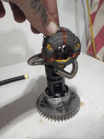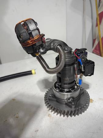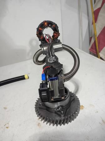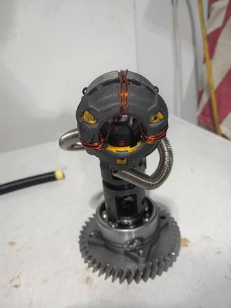 Handmade from engine parts and an impact drill, Gomer lights up with a 9v, replaceable battery and he spins! He's on a transmission bearing. I named him Gomer because he's not too bright. $45