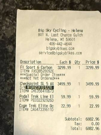 Trek Sport 6 carbon frame. Old bike was stolen, bought this one. Rode is 10 to 12 times and recovered old bike. I don’t need two bikes.