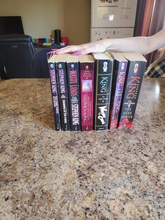 Dark Tower book series 1 thru 7. Book 5 is hard back. Some water damage to book 6.