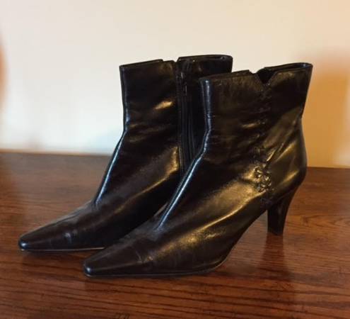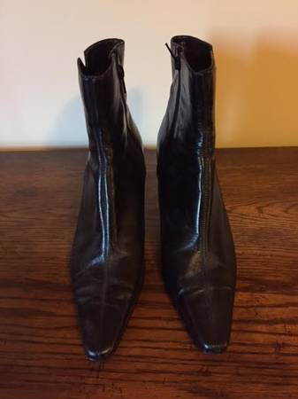 Beautiful leather upper ankle boots in perfect condition with leather X's up the side. Women’s size 8 1/2.