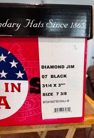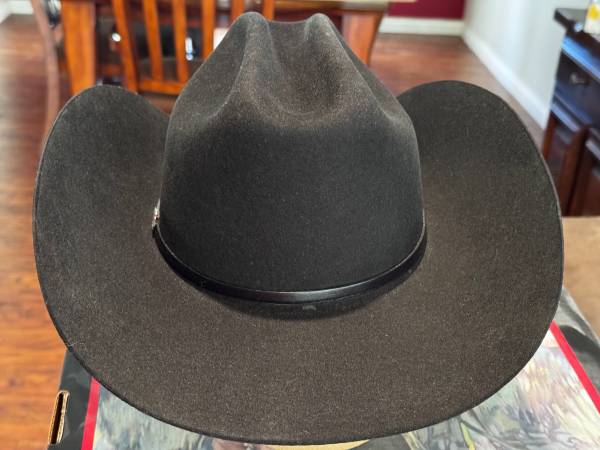 This is a beautiful made, authentic Stetson cowboy hat. It is only been worn twice for a total of about three hours. Been kept in a box as originally sold the rest of the time inside the closet of my house. Not exposed to moisture heat or dust. Your opportunity to get a great hat at a good bargain these normally sell for about $300.