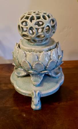 Vintage Korean Celedon Incense Burner, signed; flawless; purchased at Gyeongju Folk Art Village in Gyeongju, S. Korea. downsizing. $45.00 obo.