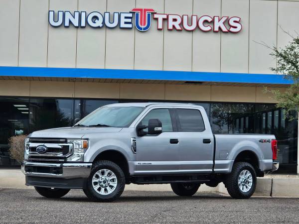 This 2021 Ford F-250 Super Duty XLT Crew Cab 4x4 grabs attention right away with its sharp look and clean style. The Iconic Silver exterior shines bright in the sun and is matched with chrome accents that set it apart. From the chrome bumpers to the chrome grille and mirror caps, this truck has a bold presence everywhere it goes. It’s the kind of truck that stands out and shows off its quality the moment you see it.Inside you’ll find a well-kept Medium Earth Gray cloth interior that feels fresh and comfortable. The seats are supportive and the 60/40 rear bench with flip-up and flip-down options gives you plenty of space when you need it. This truck also comes with cloth sun visors, outside temperature display, and a 4.2-inch productivity screen that keeps key information right in front of you. With power windows, power locks, cruise control, and tilt/telescope steering wheel with audio controls, you’ll have everything you need within reach.This truck is powered by the 6.7-liter PowerStroke V8 turbocharged diesel engine, one of the best diesel engines out there for power and dependability. It is paired with the smooth 10-speed automatic transmission that makes driving this truck easy whether you are pulling a trailer, hauling a load, or just driving around town. The strength and smooth ride of this setup makes it one of the most trusted diesel trucks on the road.The exterior features include BoxLink™, power tailgate lock, chrome bumpers, pickup box tie down hooks, and tow hooks that make it ready for the job. It also has auto high beam headlamps and autolamp on/off control to keep your path well lit. With privacy glass on the rear doors, a spare tire and wheel lock, and trailer sway control, this truck is built to give you both function and peace of mind.The trailer brake controller makes towing easier and safer, giving you more control when pulling heavy loads. With Ford’s reputation for building strong diesel trucks, this F-250 is ready to tow or haul just about anything you need. Whether you’re pulling equipment, a camper, or a boat, this truck has the muscle and features to get it done.The interior also brings in plenty of extras with a 110V/400W outlet, manual front air conditioning, particulate air filter, and Ford’s SYNC®3 8-inch screen with AppLink®. You also get SiriusXM® radio, FordPass™ Connect 4G Wi-Fi hotspot, and MyKey® for added convenience. Everything about this truck is designed to make daily use easy and enjoyable.For safety, this Ford truck comes with BLIS with cross-traffic alert, pre-collision assist with automatic emergency braking, a rearview camera, and hill start assist. It also includes airbags, the Safety Canopy® system, AdvancTrac® with RSC®, and an advanced security pack. These features help keep you and your passengers safe whether you’re on the job site or on the highway.This truck has been fully serviced and is ready for its next owner. At Unique Trucks, we keep things simple—the price you see is the price you pay. We never add hidden markups or addendums. What you see is what you get, and that means no surprises when you’re ready to buy.We also offer our no obligation delivery service, where this truck can be delivered right to your doorstep. You can test drive it from the comfort of your own home, make your best deal over the phone, and if you don’t like it, you don’t have to buy it. It doesn’t get easier than that, and it’s the best way to shop for trucks without any pressure.At Unique Trucks we also love trade-ins, and we make it simple to put the value of your current vehicle toward one of our trucks or lifted trucks. We encourage you to come by and check out this F-250 and the rest of our lineup. Trucks like this are clean, sharp, and ready to roll, and this one is waiting for its next driveway.