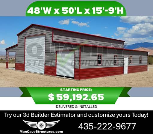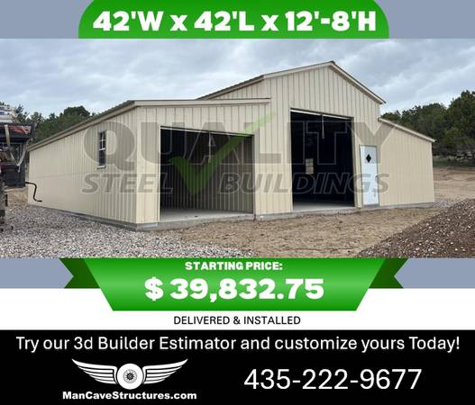 Agriculture Buildings delivered and Installed We go to ground or concrete Best Pricing Utah owned and Operated Customize with our 3d builder https://mancavestructures.sensei3d.com/ Call or text if...