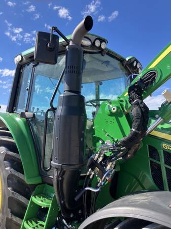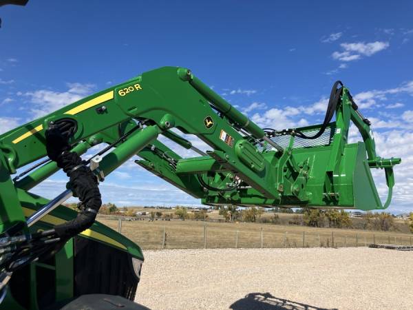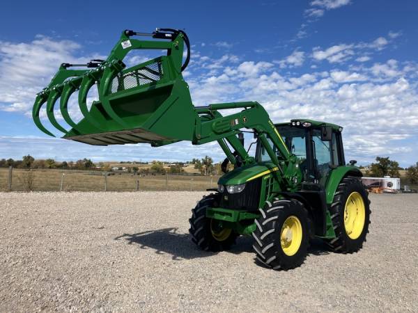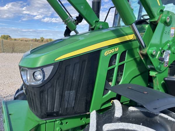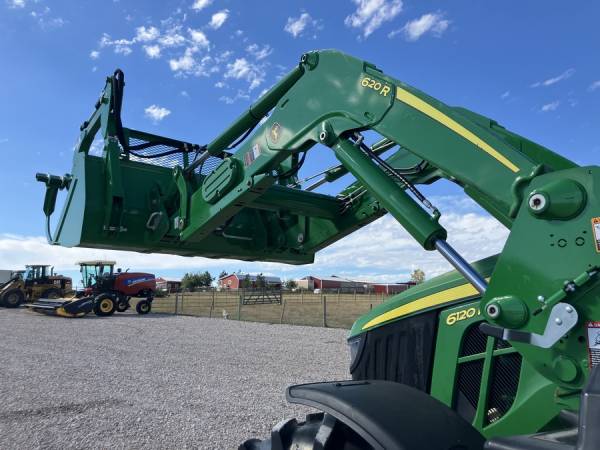 2020 John Deere 6120M, MFWD, 120HP, 2540 hours, 24 speed power quad with LH reverser, John Deere 620R loader, bucket, grapple, joystick with thumb control, 3pt, 3 remotes, 540/1000 pto, excellent rubber, front fenders, mirrors, super nice tractor!