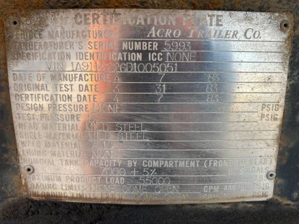 Up for sale is a 1983 Acro T/A 7000 gal Asphalt Tank Trailer. Spring Suspension, 11R22.5 Tires. Please call with any questions. Allen www.bluepointsales.net Call Today