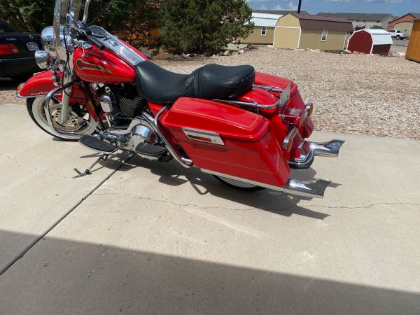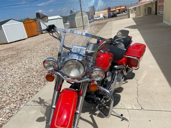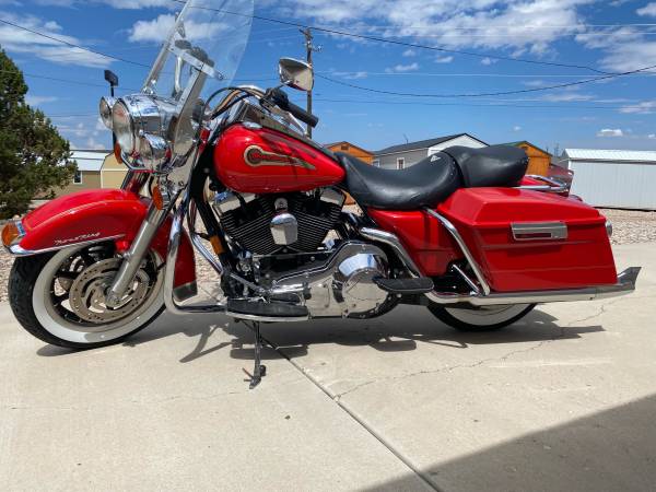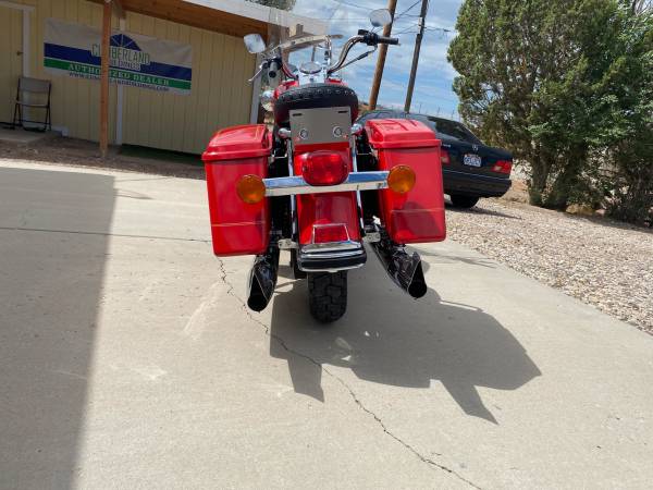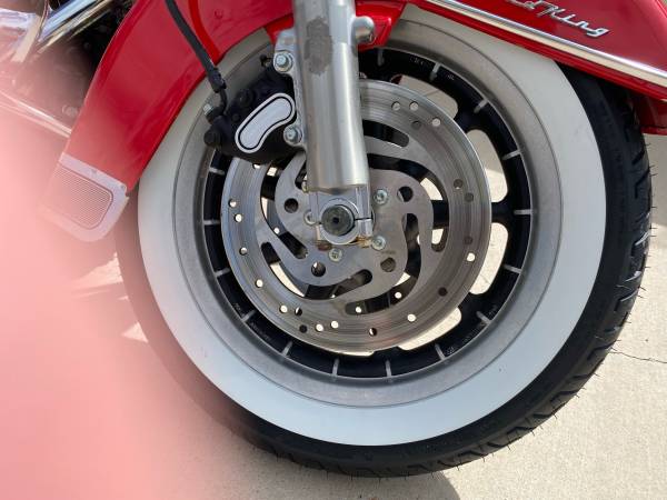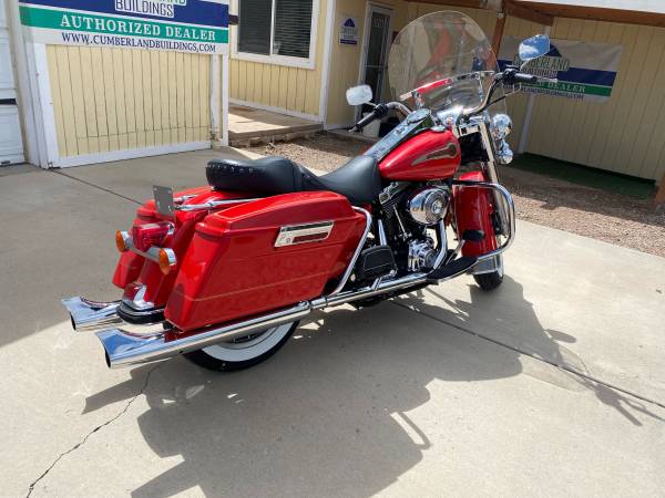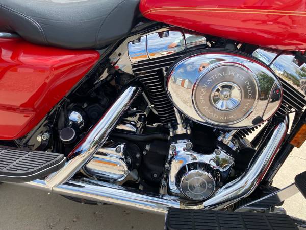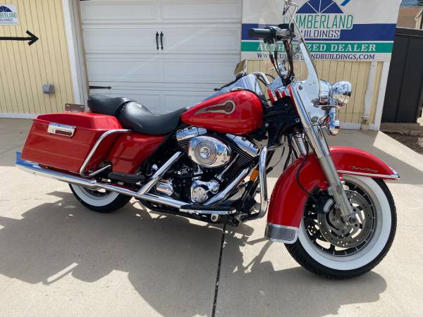 This is from the Steve Giger Collection. Only 932 miles on the Fire Engine Red Shrine special. The miles are from maintenance rides every two weeks to keep engine and trans from getting stale. The bike has never gone anywhere. New windshield, new tires, new HD Screaming Eagle slip on mufflers with original in the box. All original collector kept indoors.
