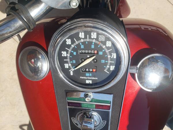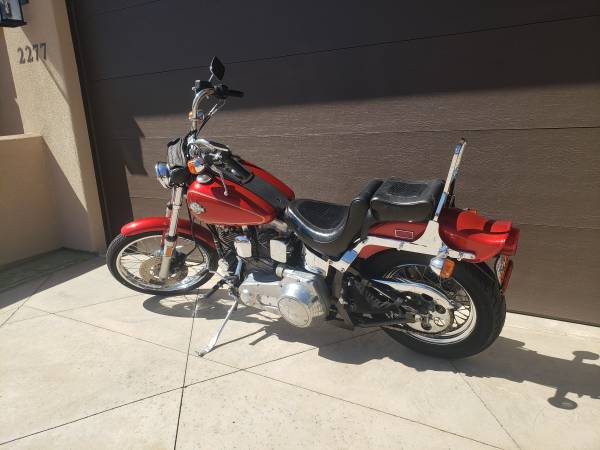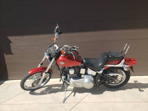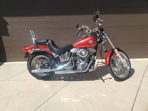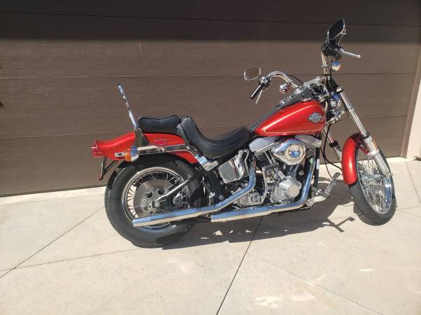 I have all the original parts like pipes , carb, dual fire ignition, cam, etc. All books , original book, parts book , maintenance book, etc. Lots of extra stuff. It is a 80 cubic inch or 1340 cc with 4 speed and kick start, chain drive FXST. This was the first year of the Softail design with the Hardtail look and soft ride. (hidden underneath are springs and shocks) I've changed the oil and filter every year since new. Tires look new but should be changed for long trips this is the third set of tires. I just ride around town slow and its not a worry.