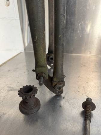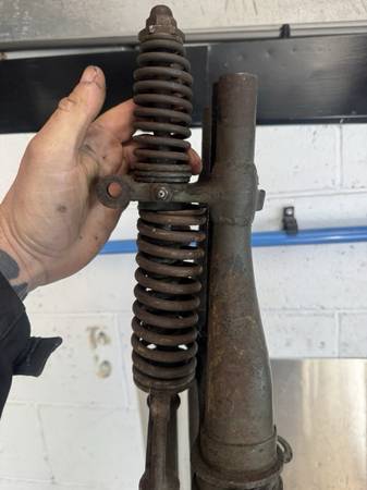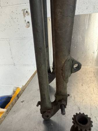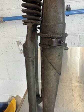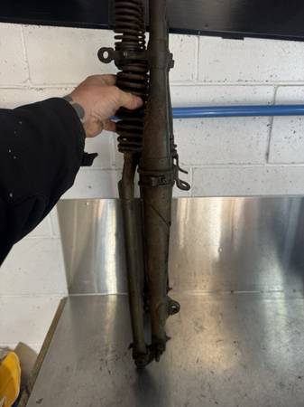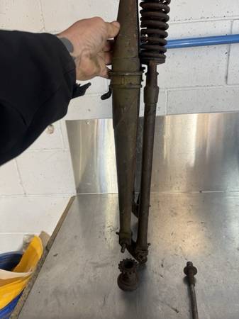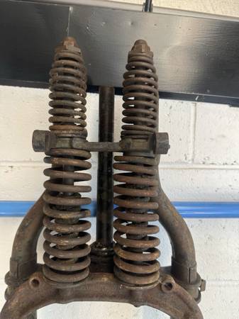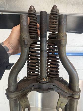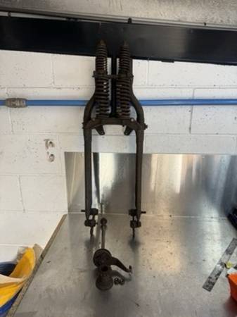 Nice crusty original paint 45” Springer front end assembly as shown. Not perfect but it’s as about as nice as they come in used condition. Last set I’ve got. Fixed price postage in USA. Overseas postage at cost. Pictures form fitment and condition description. Please note i will combine shipping. Message me after your multiple item purchase so i can refund the difference. I ship through USPS and no pickup are allowed, can only give so much fitment advice on a bike ive never seen, please reference your part book for fitment advice.