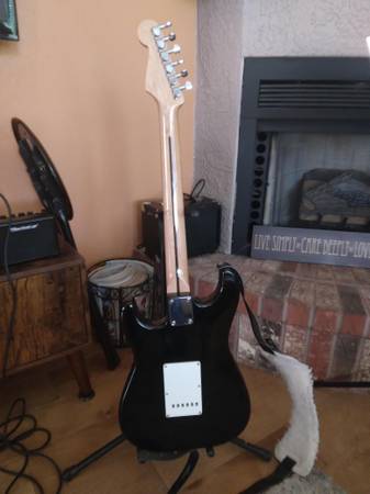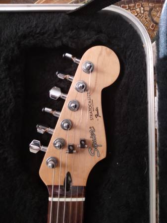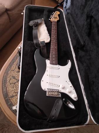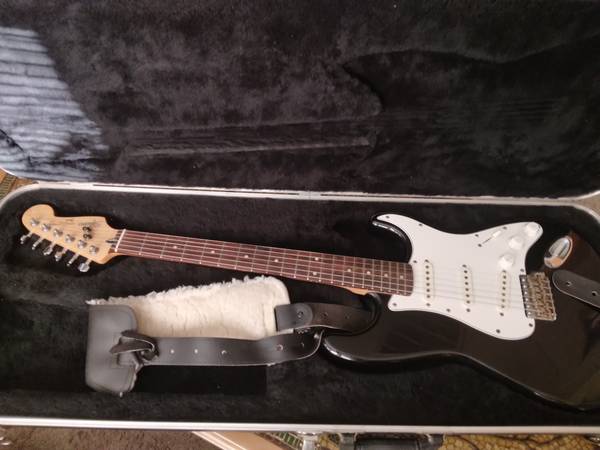 Fender Stratocaster very good condition, new strings, neck recently set up, deluxe strap, hard shell case, cord, guitar stand, & Estaban G-10 amp with distortion. Original "E-Series" Squiers (1987): These guitars are known for being high-quality instruments, which makes them more desirable and valuable than many other Korean-made Squiers. Values on marketplaces like Reverb and eBay typically fall in the $500–$750 range for guitars in very good condition with all original parts.
