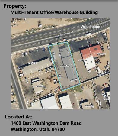Clean, updated and big 1,231 sq ft unit off Washington Dam Rd in Washington, UT with tall ceilings, big roll-up bay door, shop sink, and attached office with beautiful flooring, ceiling fan, and bathroom.