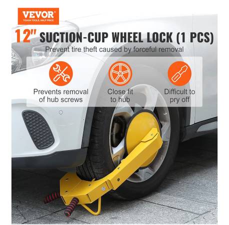 12-inch Suction Cup: A larger suction cup design effectively covers and protects the wheel's lug nuts, preventing thieves from removing the entire tire. The rubber ring around the suction cup protects the wheel's surface from scratches and ensures a secure fit, making it difficult to pry open.
