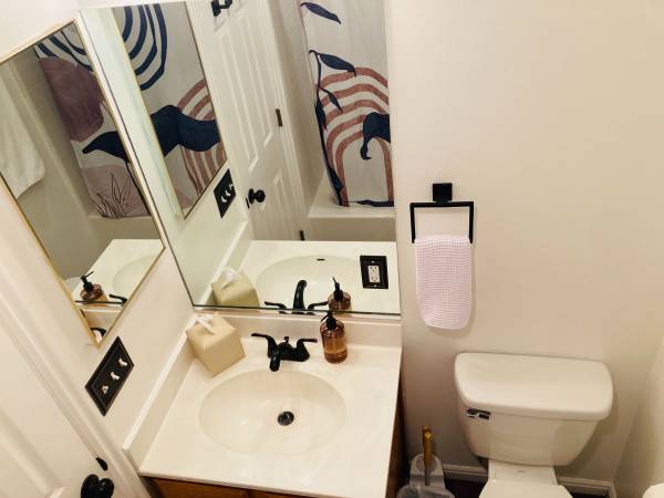 - Master bedroom ($940/mo./$750 deposit, available Dec. 16th): Own bathroom w/large tub and separate shower, double sink vanity, as well as two closets - Can be rented furnished or unfurnished. Pics of actual room coming soon!