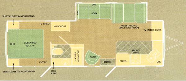Outside: Brand new Radial Tires. Large patio awning (Entry Side Lt) and on Slider (Opposite Side Rt), although the fabric has deteriorated & needs replacing. Batteries, Gas Tank, and a few other items might also have to be upgraded or replaced.