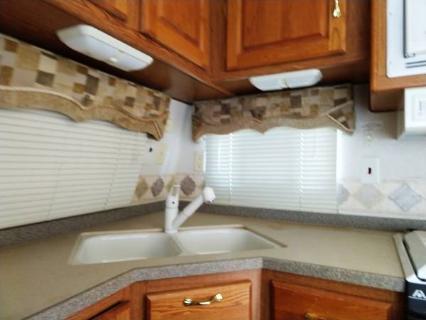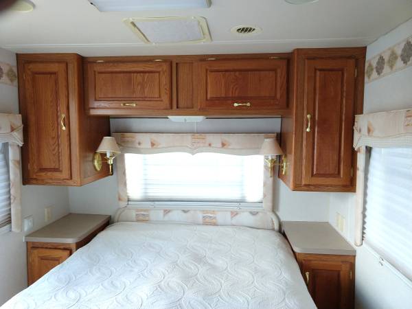 Inside like new. One step into and you will feel right at home. Beautiful hardwood cabinetry; stylish and plush furnishings, conveniently and practically arranged. 19” TV, (needs upgrading), Large Refrigerator w/Ice Maker, Water Heater, 3-Burner High Output Range/Oven; Microwave;Tinted Windows with Safety Glass and Venetian Blinds/Valances. Built in Safe, Built in Vacuum; Fire Extinguisher and many more contributors to convenience, comfort and safety. Well maintained over the years.