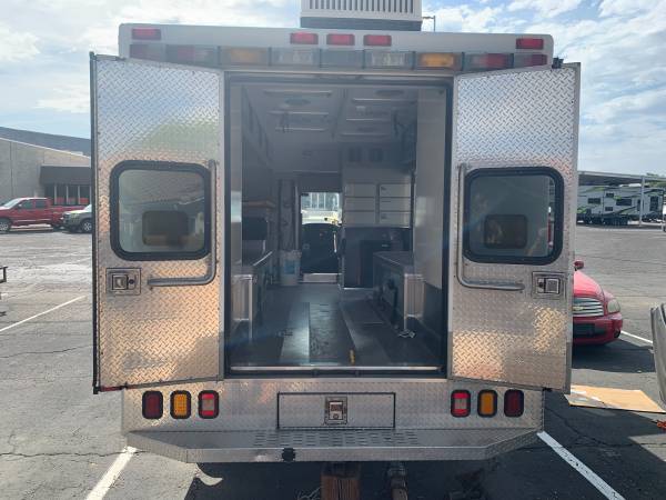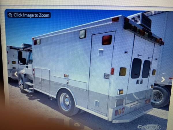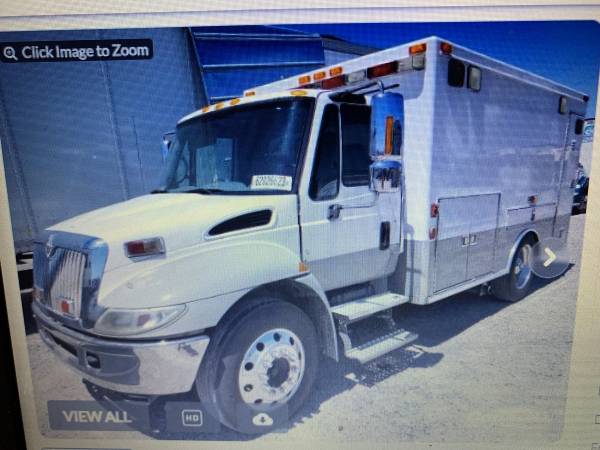 2004 International 24' ambulance licensed and partly converted to R.V. and licensed as R.V., DT466, Auto, 140 K miles, pass through, all new tires, new hitch, new trailer brakes, and new wiring,...