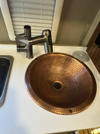 New matching Spare tire/rim, Brand New 13' full-length Carefree awning - recent install through Winnebago. Will Include a Pelsee 1200 Pro Front/Rear - review mirror Camera with voice & GPS. New install - Copper Kitchen sink and Geoation temperature display faucet. Upgraded shower drain system. 3" Matress topper, Removable center console tray/cup holder. Pull-down Screen Door, Black/red vinyl graphics.