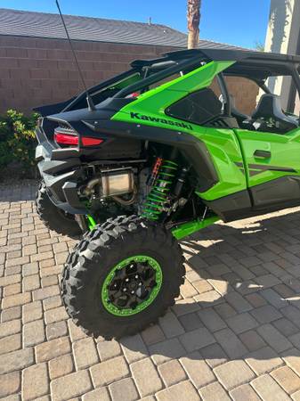 Here it is, the badest side by side from the factory. 250hp, 5 seater with all the latest technology. Only 2 miles!These are extremely hard to find or see. Limited numbers to dealers. I bought it, trailered it home, unloaded and drove down the street. That's it. Right after that life threw me a curve and now I need to sell but don't have too. I also have 2k worth of genuine Kawasaki accessories for sale and still in the box. Extra belt, front and rear camera, rear cargo/ spare tire carrier with strap, low profile rear storage box and more. Price is firm. Private party sales in NV and some other states pay no sales tax on private party sales. That's a savings of over 4,600.00! Please don't waste each other's time with trades or financing request. Bring cash or get a loan from your bank. I have title in hand! If interested please call or text. Text is better as reception is spotty at my house. Thanks Chris.