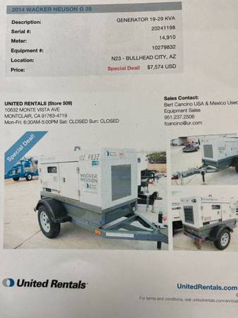 Pic is for reference only. Bought from United Just serviced and runs perfect. Diesel fuel. My loss is your gain. Call or text Joe 909-22 eight- 99 5six