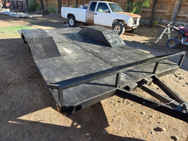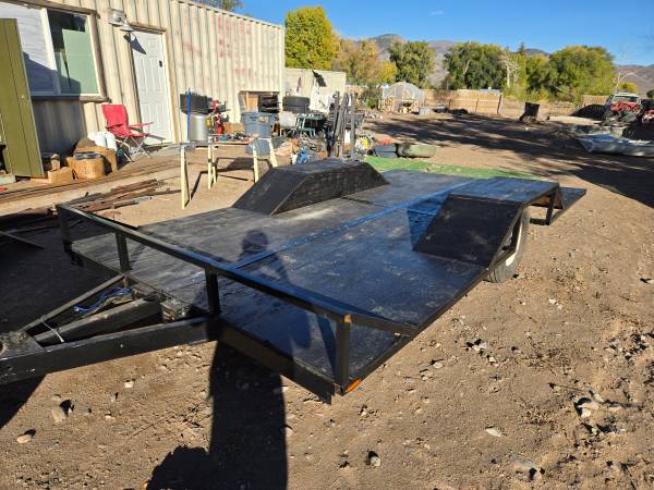 2025 flat bed custom built. 15ft deck 18ft overall 5200lb axle, led,lights, new brakes, oversized drive over fenders. Asking $5000.00 obo. Contact jeff
