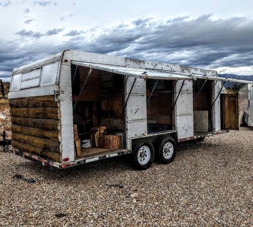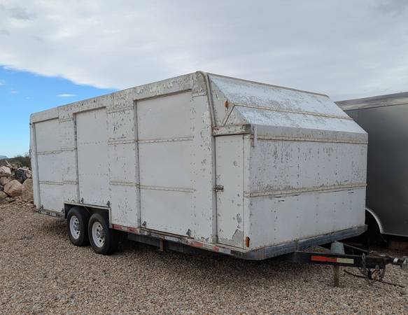 2003 - 20' x 8' Display Trailer. E rate tires. Leaf springs with brass bushings and grease zerts. 8' alum loading ramp. Needs paint.