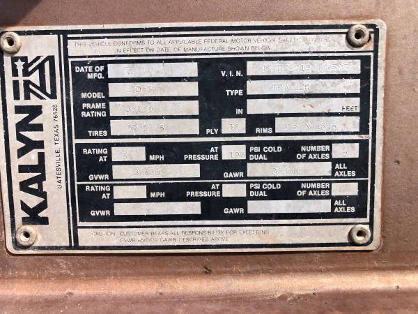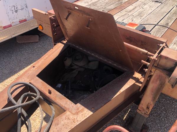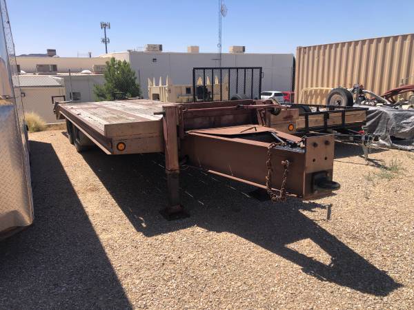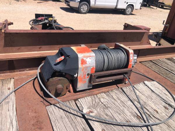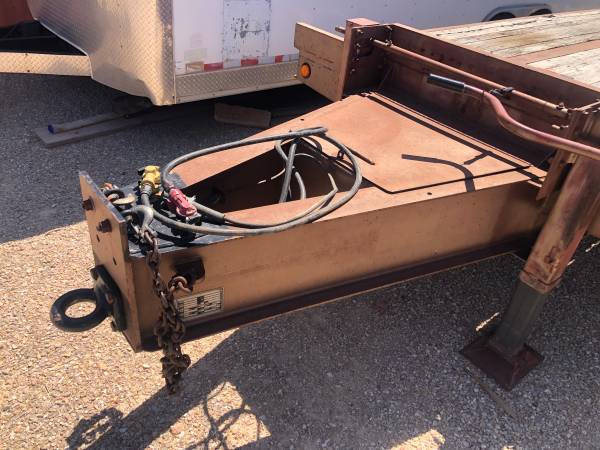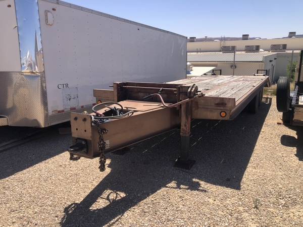 Deckover Equipment Trailer, 21’ Deck + 5’ Fixed Dovetail. 37000 lb GVWR, Air Brakes, Lunette Ring Hitch, 20,000 lb Heavy Duty Dually Axles, Oil Bath Hubs, Spring Suspension, 2 - 12,000 lb Drop-Leg Jacks, New 235/75R17.5 - 18 Ply Radial Tires, Brake Shoes and Drums are in Like New Condition, Spring Assisted Ramps, Electric Winch.